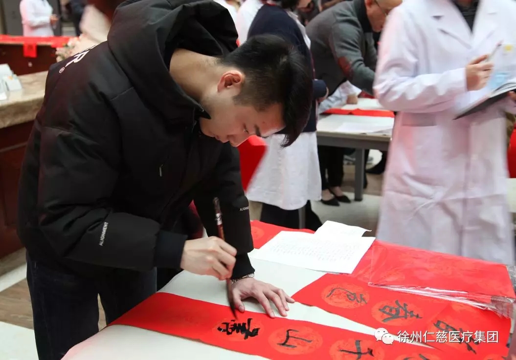 上午9点半,仁慈医院2019年写春联送祝福活动正式开始,书写者展红副、润笔、蘸墨……方寸间勾画美好愿景,笔墨中承载生活向往。