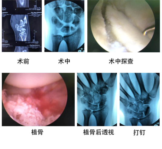 齐主任介绍,相较新鲜舟骨骨折,陈旧性舟骨骨折的手术步骤更为复杂,难度也更高。本例患者右手腕舟骨骨折一年未愈合,边缘硬化,术中首先在关节镜下,用磨钻将骨折断端打磨成新鲜断面,复位并植骨后再在机器人导航辅助下打入螺钉固定。关节镜微技术的优点在于对周围韧带和关节囊损伤小,不影响组织血供,机器人导航的优势在于精准定位,理论误差在0.1-0.8毫米。二者的结合,使手术的时间缩短,而效果显著提高。