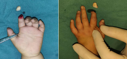 几天前,妈妈带着1岁8月的腾腾(化名)来到了仁慈医院急诊手外科。接诊医生仔细询问了妈妈腾腾的病情之后了解到,罪魁祸首竟然是家里的一只小白兔。前几日妈妈买了一只小白兔给腾腾玩,腾腾感觉小白兔很可爱,不停地逗白兔玩耍,因为年纪尚小把握不了尺度惹急了兔子,兔子张开嘴咬住了腾腾的右手,锋利的牙齿瞬间咬断了腾腾右手的示指。腾腾妈妈听到腾腾的哭声立刻赶来查看,迅速给孩子包扎止血之后,腾腾妈妈拿着断指把腾腾送到了当地医院,因为幼儿手指细,断肢再植有难度,后又转送到我们仁慈医院。接诊医生了解病史后,查看断指后表示:腾腾右手示指远节甲根处完全离断,断端挫伤污染严重,血管神经有抽出的痕迹,再植难度大。但是腾腾爸妈不想孩子的童年就有了缺失,影响以后的生活,强烈的要求保指,仁慈医院李海建医生团队表示会尽最大努力接活断指,哪怕有一丝丝希望,都不会放弃,都要进行断指再植手术。
