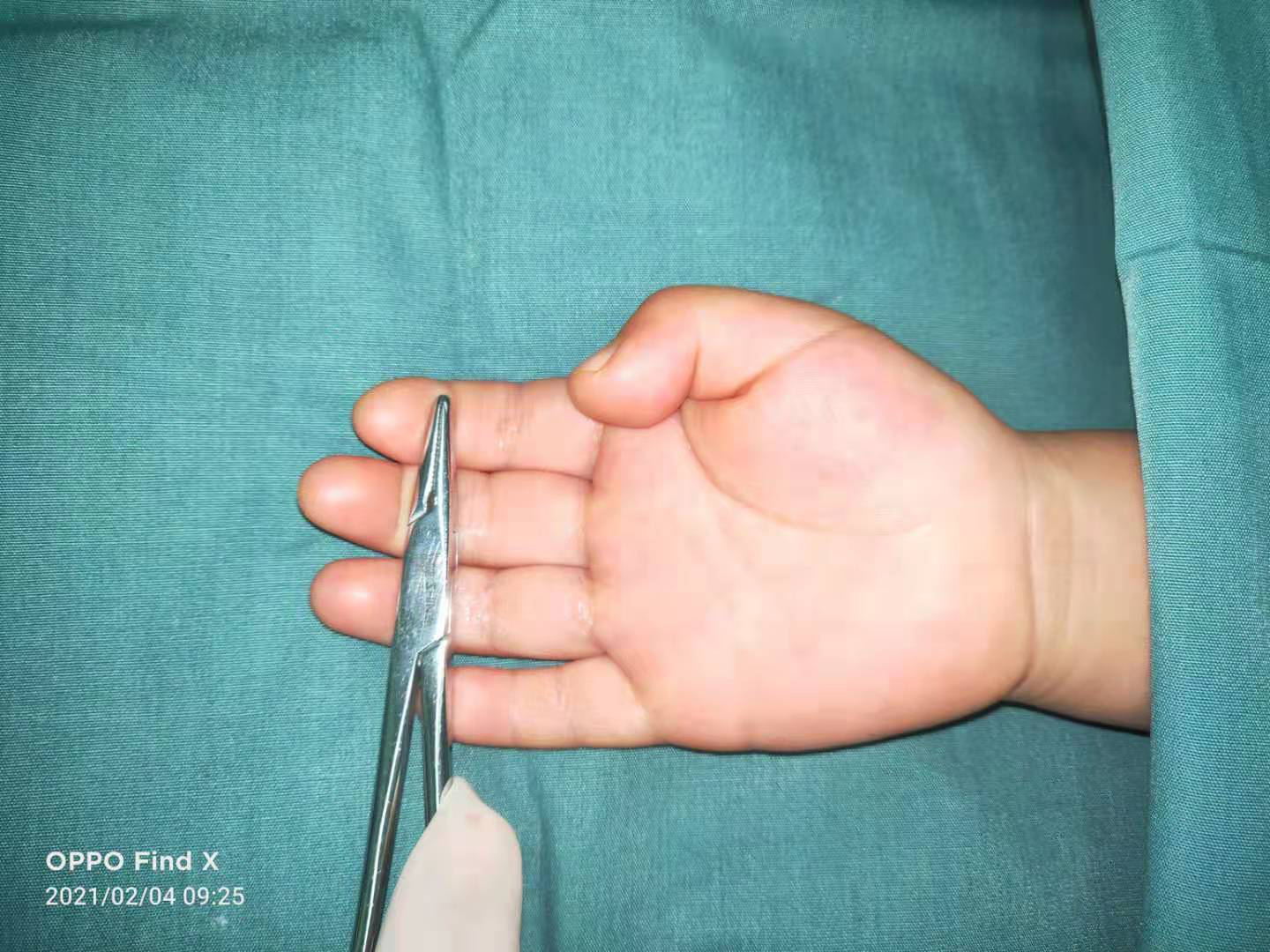 门诊唐医生接诊了小彤彤,简单查体后告诉***妈不用担心,这是典型的小儿拇指先天性狭窄性腱鞘炎,通过一个微创手术,就可以立竿见影,但是这个手术要早做,功能效果才好,建议在1岁左右手术。但是现在小彤彤已经6岁了,拇指长时间屈曲,肌腱弹性不好,甚至比健侧要紧一些,小彤彤的妈妈听了以后,表示不能再耽误了,于是赶紧办理了住院手续。唐医生手术小组完善了术前检查,第二天就给小彤彤做了微创手术,麻醉后,小彤彤的拇指终于可以伸屈自如了,妈妈看到彤彤的拇指可以自由活动,紧锁的眉头终于舒展开了。