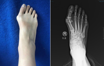 轻则影响美观,重则一瘸一拐,视每一步为畏途!拇外翻畸形一旦发生是不可逆的,如果不进行干预治疗将随着年龄增长而日渐严重。