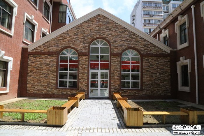 在民主北路创意68的后面有一座外立面、内饰均走欧式风格的建筑群,楼宇之间有长长的走廊相连,高大的拱形门窗、大理石纹路的地面、清新淡雅的水彩画随处可见……要不是科室名牌和“白大褂”的提醒,很难想象这竟然是一家医院。而这所医院的名字就是徐州仁慈老年病医院,心脑血管科、内分泌科、呼吸科、消化科、肾内科、中医科、康复科一应俱全,同时还设立了妇科、耳鼻喉科、口腔科、眼科、皮肤科、急诊医学、医疗影像、医学营养、医疗美容等科室。