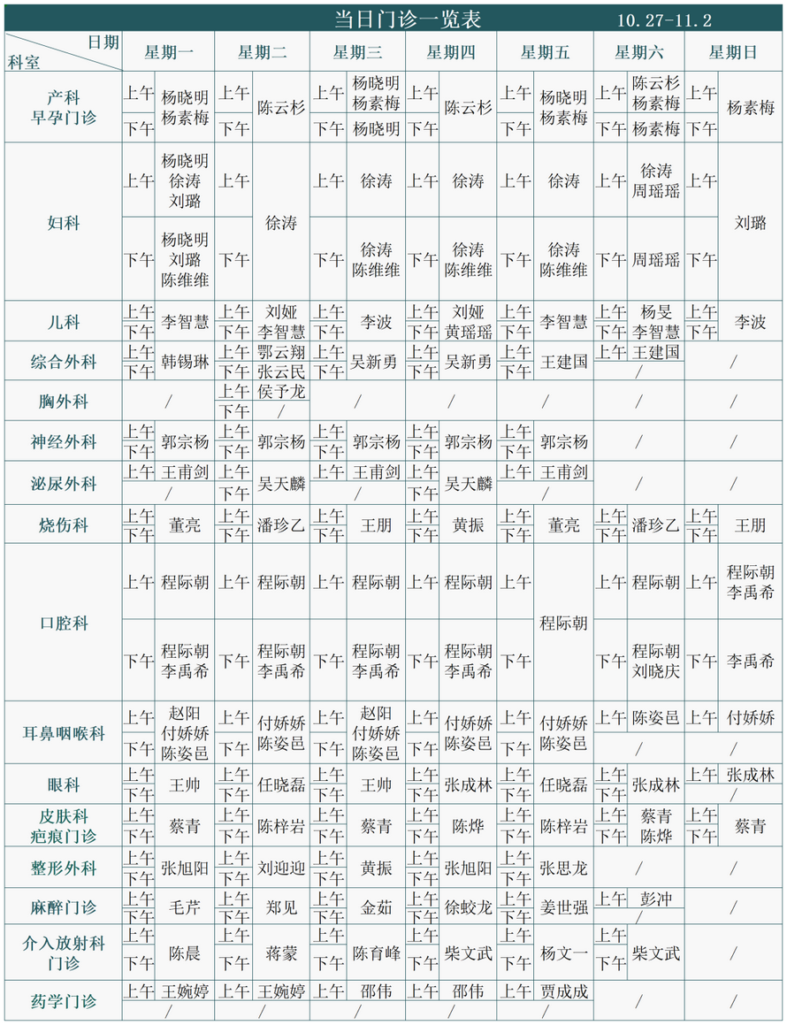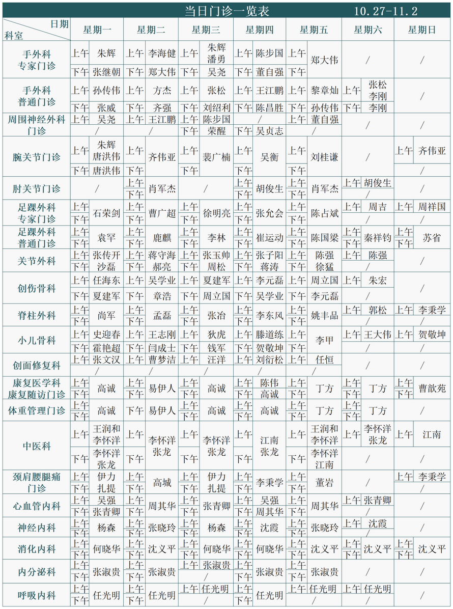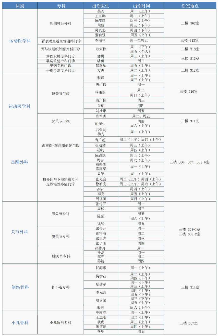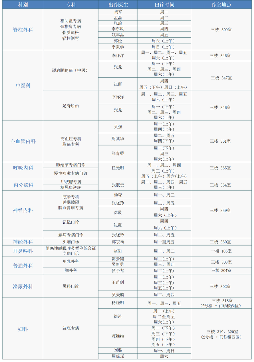 注:专家门诊安排如有临时变动,以院方当日公布为准。