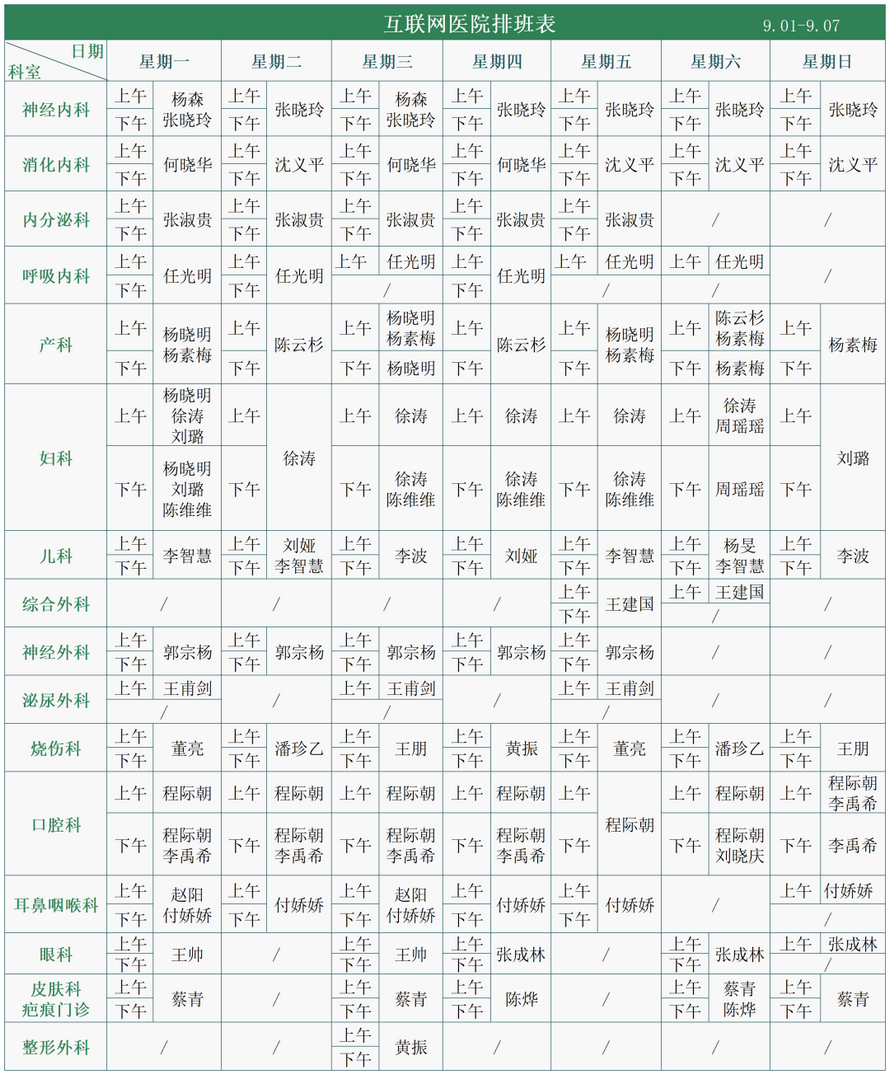 互联网医院排班表