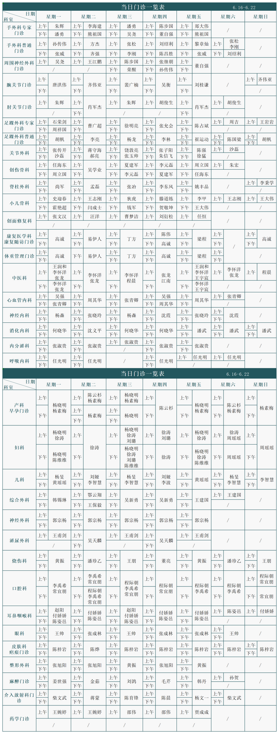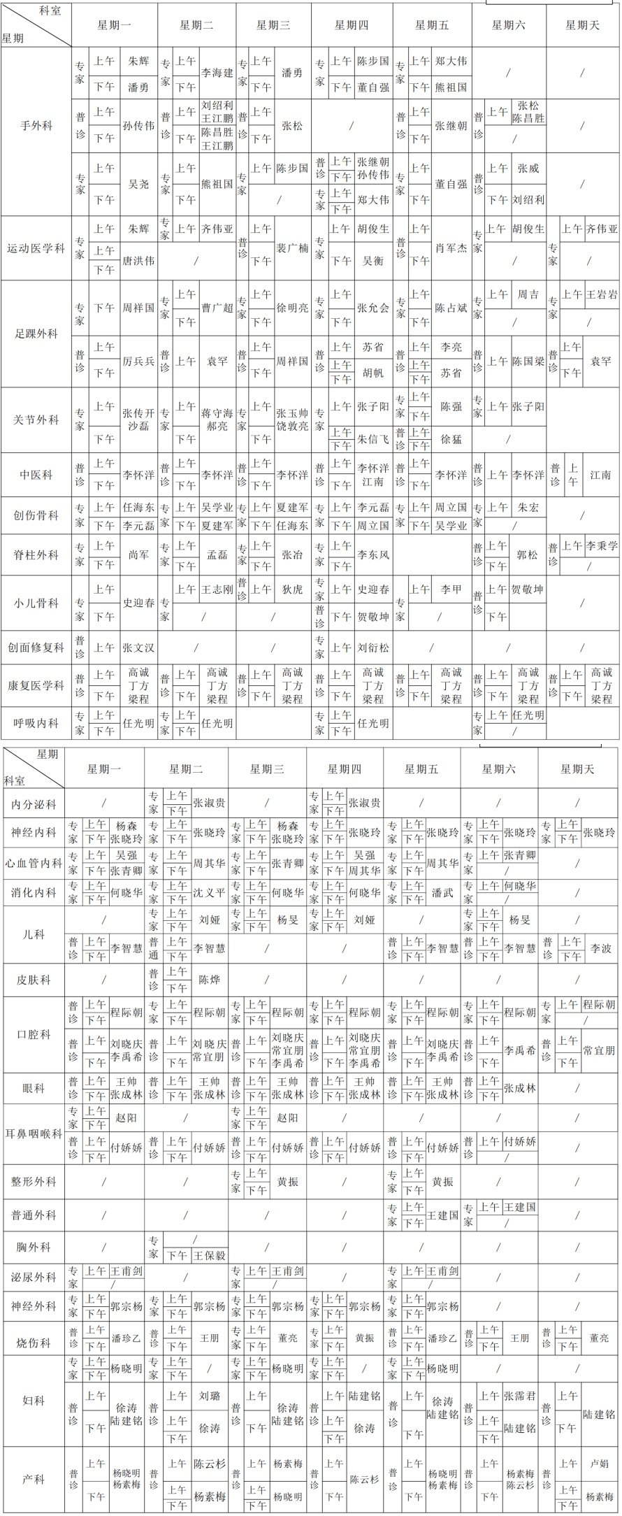 注:专家门诊安排如有临时变动,以院方当日公布为准。