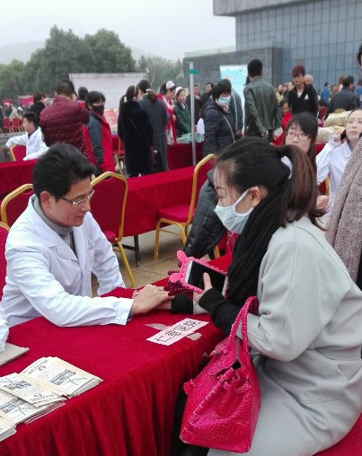 徐州仁慈老年病医院中医科杨广志主任在为市民现场诊脉。