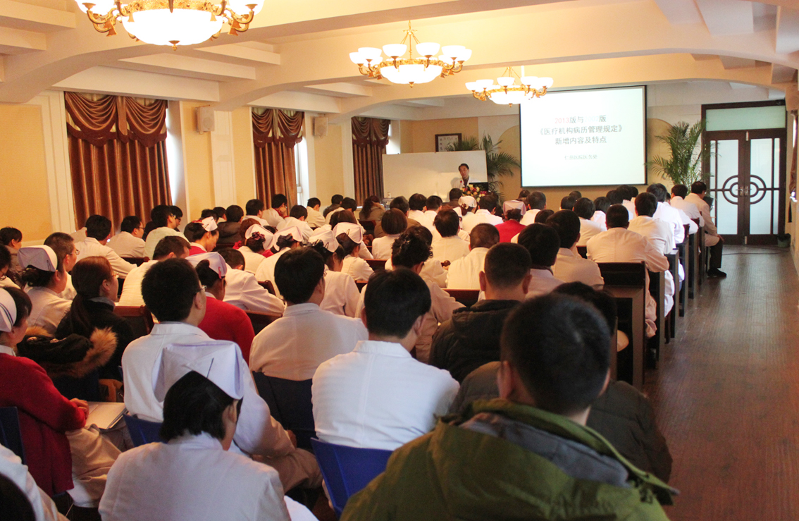 为进一步加强我院病历管理工作,保证病历质量以及维护医患双方的合法权益,2014年1月22日在我院多功能厅举办了《医疗机构病历管理规定(2013年版)》学习培训班,100余名医护工作人员参加此次培训。