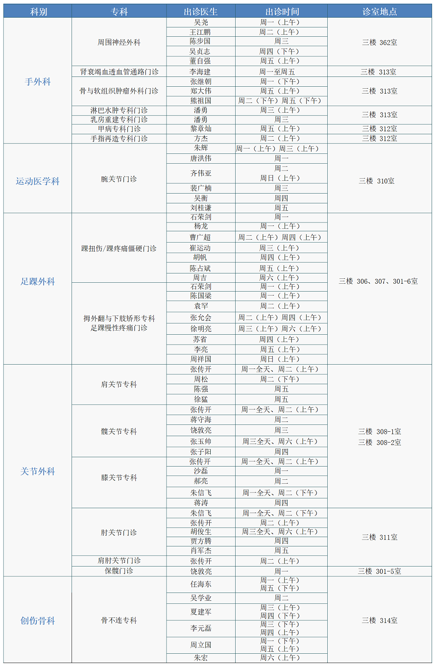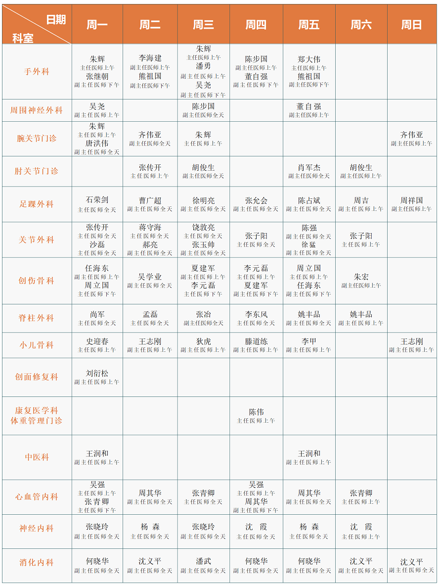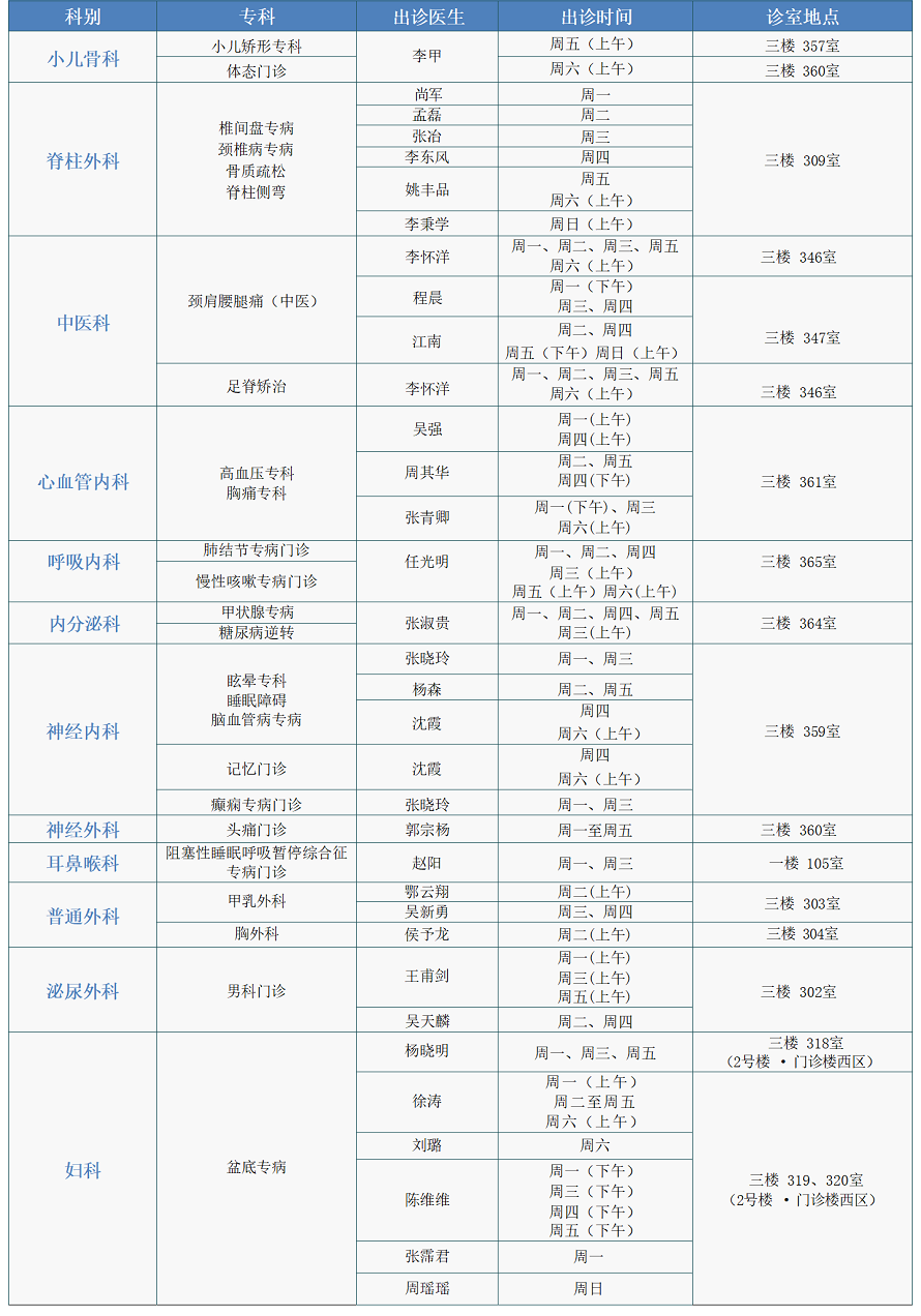 注:专家门诊安排如有临时变动,以院方当日公布为准。