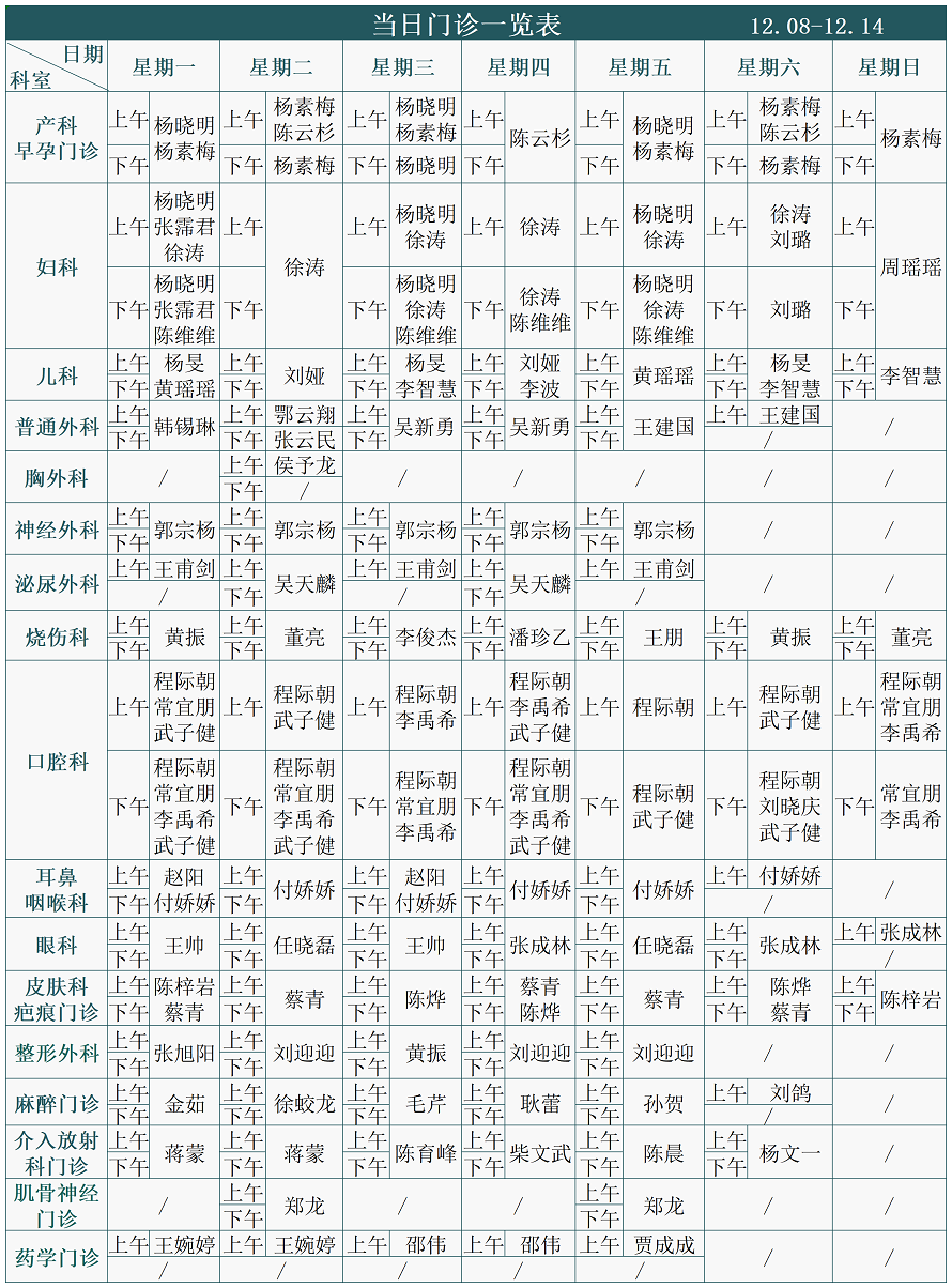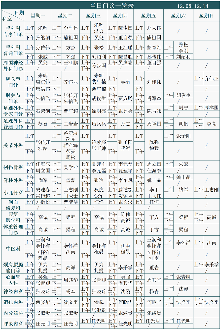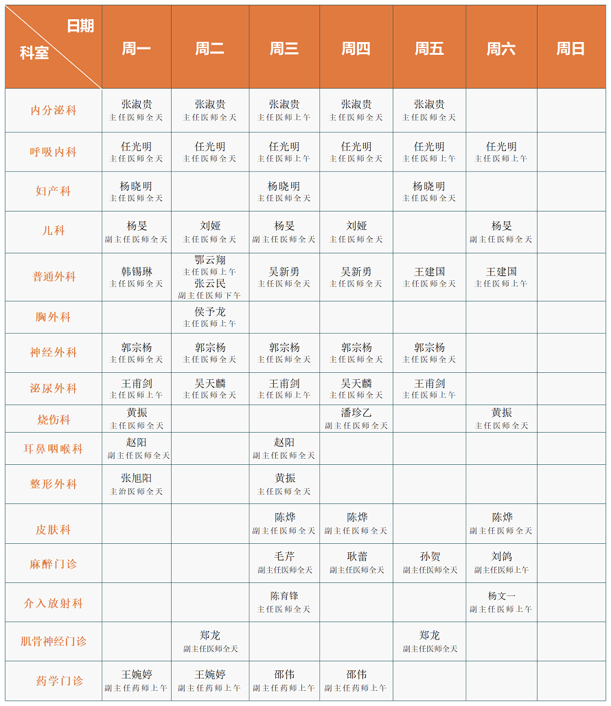 注:专家门诊安排如有临时变动,以院方当日公布为准。
