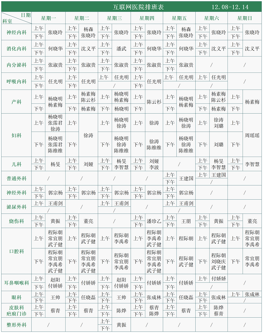 互联网医院排班表